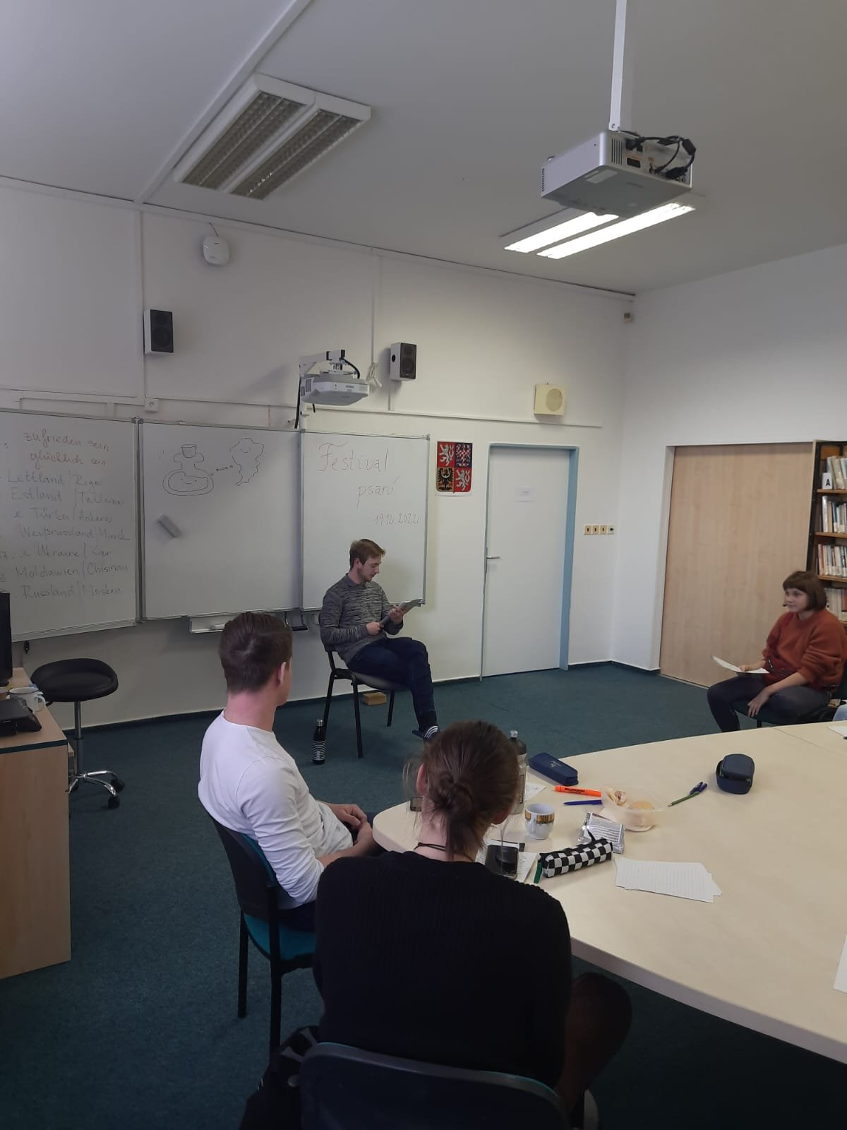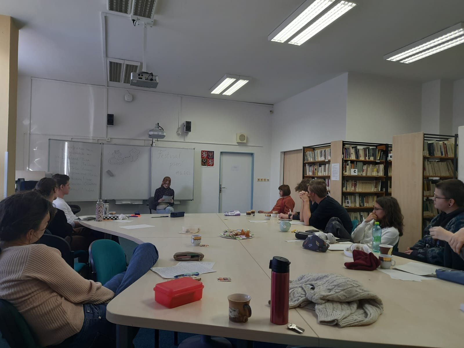 Každý psal na své téma, zvolil si svůj útvar a za pár hodin už jsme měli důkazy unikátního spisovatelského talentu. Během autorského čtení nám studenti představili svá díla a my jsme se mohli ponořit do zajímavých příběhů v jejich povídkách, nechat myšlenky plynout během úvahových textů o životě nebo se zaposlouchat se do poetického jazyka několika básní.
