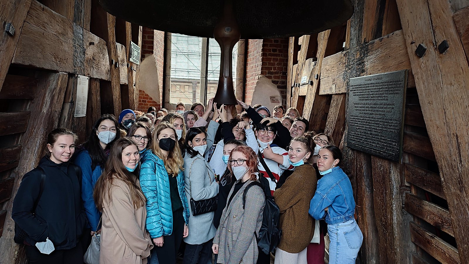 Naše první kroky vedly podél Wisly k drakovi, pak na slavný vrcholek, kde se nachází nádherný zámek s královskou katedrálou. Prohlédli jsme si interiér katedrály a vyšlapali jsme na Zikmundovskou věž, což byla velmi dobrodružná cesta vzhůru ve stísněném a úzkém prostoru. Odměnou nám byla možnost stát přímo pod nejslavnějším zvonem Polska, zvonem Zikmundem a taky překrásný výhled na historické město Krakov.